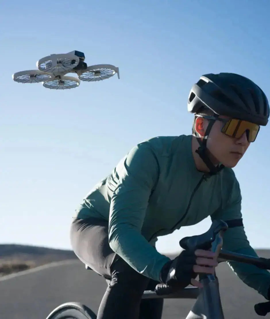DJI Flip abre nuevas posibilidades, presenta un impresionante diseño compacto con capacidades de imagen excepcionales. Soporta el despegue desde la palma sin un control remoto, permitiéndote capturar momentos en movimiento más fácilmente que nunca. Además, la función de seguimiento de objetivos por IA asegura que el sujeto principal permanezca perfectamente encuadrado, para que podás configurar tomas cautivadoras con facilidad. El diseño innovador del Protector de hélices integrales y plegables combina perfectamente una construcción ligera con una seguridad óptima. Ya sea capturando paisajes lejanos o retratos cercanos, DJI Flip aporta belleza visual a cada fotograma.