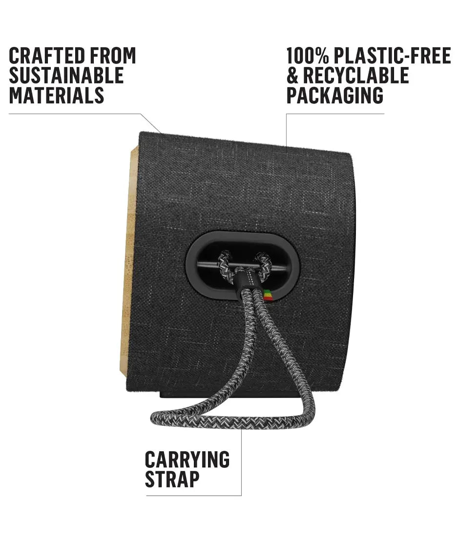 - MATERIALES SOSTENIBLES: Adopta tu estilo natural con el mensaje de Marley sobre artesanía y sostenibilidad. El Get Together 2 Mini está fabricado con bambú natural, tela REWIND de primera calidad, silicona REGRIND y aluminio y se entrega en un embalaje 100% libre de plástico y reciclable.
