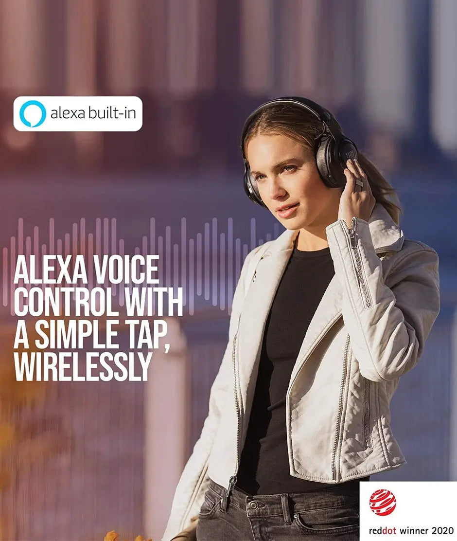 - AMAZON ALEXA: Tus auriculares Bluetooth JBL CLUB 950NC te tienen cubierto con el asistente de voz Amazon Alexa. Simplemente usa la aplicación My JBL Headphones para configurar tu asistente de voz y toca tu auricular izquierdo para enviar mensajes de texto, reproducir tu música favorita, comprobar el clima y más.