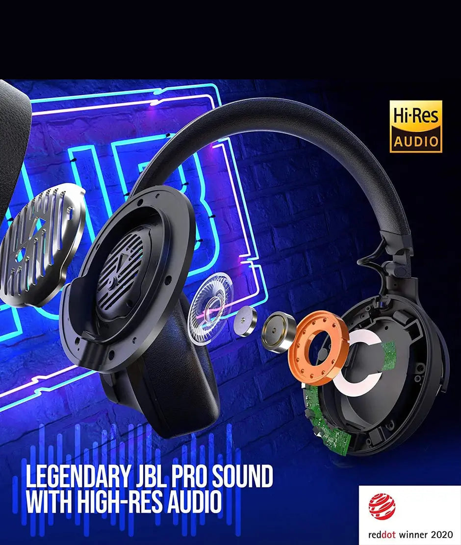 - Piérdete en la música: pon los auriculares Bluetooth JBL CLUB 950NC sobre tus oídos y trae el escenario hacia ti. El legendario sonido JBL Pro y el audio Hi-Res te ofrecen una amplia gama de detalles y claridad para la mejor experiencia auditiva.
