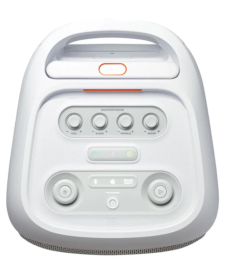 Disfruta del potente sonido JBL Pro con dos woofers de 6.5" que ofrecen graves limpios, precisos y profundos incluso al máximo volumen, y un par de tweeters de cúpula de 25 mm que producen agudos cristalinos. Tanto en interiores como en exteriores, puedes llenar de música un espacio del tamaño de una cancha de tenis.