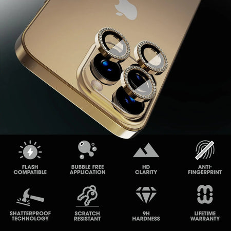 Vidrio Templado Para iPhone 14 / 14 Plus - MyBatPro GlamCam - Gold