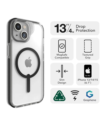 - Funda transparente y delgada: la funda ZAGG Santa Cruz es la funda MagSafe definitiva para iPhone 15. Fabricado con grafeno duradero, uno de los materiales más duros de la tierra, la funda protectora protege tu iPhone contra caídas de hasta 4 m
